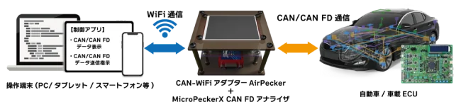 - CAN/CAN FD通信をWiFi(Ethernet)変換