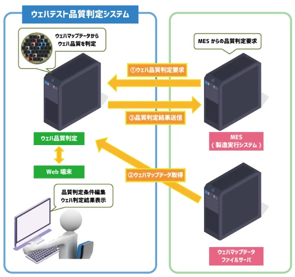 ウェハテスト工程では、テスト結果情報(ウェハ上のチップ座標・良/不良判定など)をウェハマップデータとして電子データ化することで、以下を実現しました。- テストトラブル時の再テストによるリカバリ